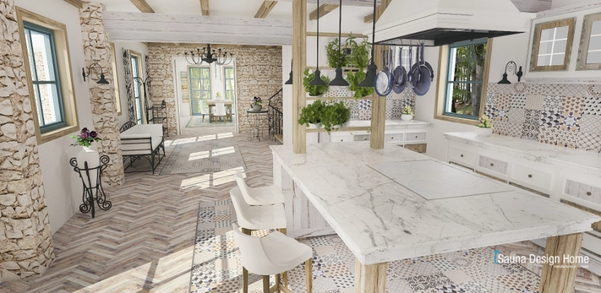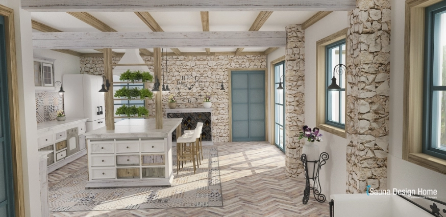 A belsőépítészeti munka során az életteret oly módon alakítottuk ki, hogy a stílusra jellemző kiegészítők, színek, anyagok és természetes kőburkolatok köszönjenek vissza.