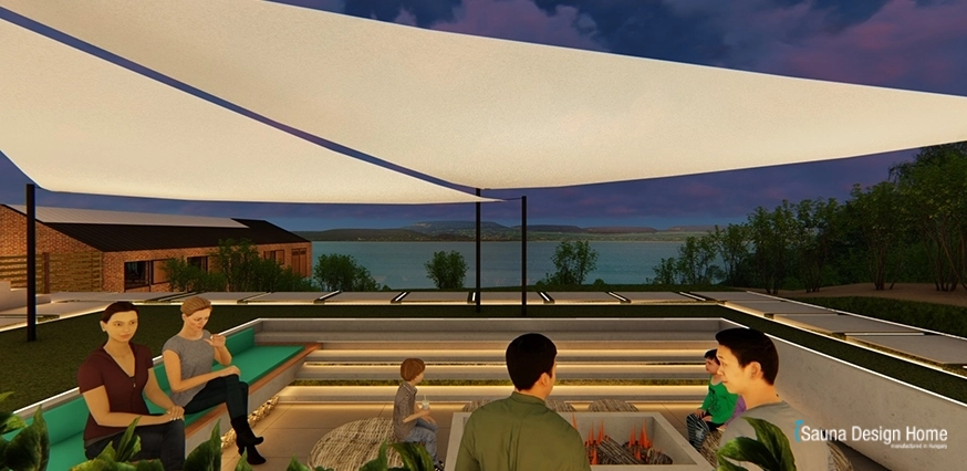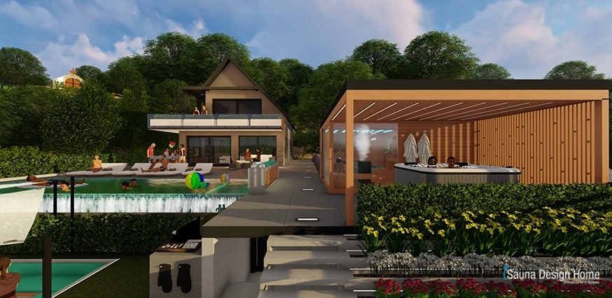 Tudatosan, lépésről-lépésre megtervezésre került egy minden igényt kielégítő kültéri wellness szaunaház.