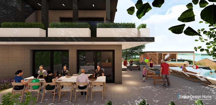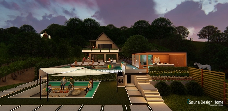 A családi ház tereiben, kiegészítőiben, színeiben, fényeiben és hangulatában is az igazi otthon érzését nyújtják. A családi ház tervezése mellett impozáns kert, praktikus garázs és igazi luxus wellness terasz is szerepel a terveken. A wellness teraszhoz modern stílusú szaunaház, tágas medence és kényelmes pihenő tartozik hangulatos fényekkel és fedéssel.