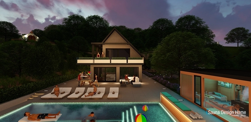 A szaunázás lehet életforma, a mindennapok része, egyszerre kikapcsolódás és felfrissülés. A szauna segít szervezetünknek megszabadulni a salakanyagoktól, hatékony immunrendszer-erősítő és érregeneráló hatású. A szaunaház belső terében kialakításra került egy kombinált szauna gőzfürdővel, egy wc, zuhanyzó helység és a pihenőtér.