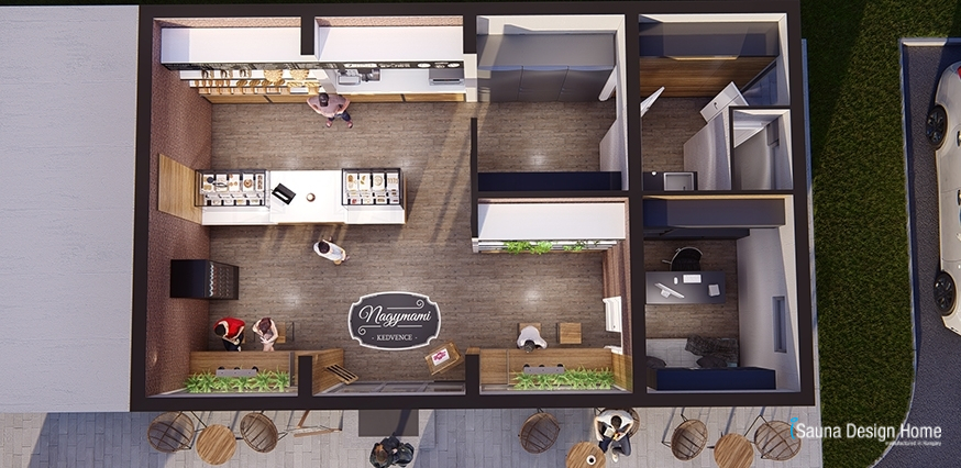 Belsőépítészeti látványtervezés - Nagymami Kedvence Delikátesz