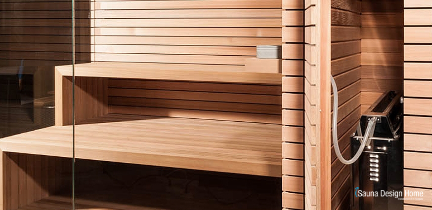 Az egyedi építésű bioszauna különlegessége a minimál stílusú, praktikus padszerkezet, a felhasznált finn rezgő nyárfa faanyag letisztult hangulata, a nagy üvegfelületek térnövelő hatása és a rejtett szaunakályha elhelyezkedése.