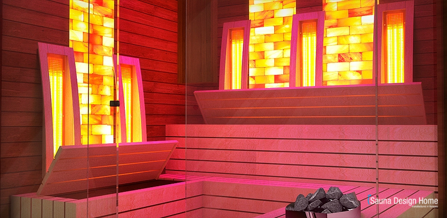 Az egyenes vonalú, egyedi szauna design, a meleg színhatású himalája sófal, a padozat vonalvezetése és a megfelelő anyaghasználat együttese eredményezi mindezt.