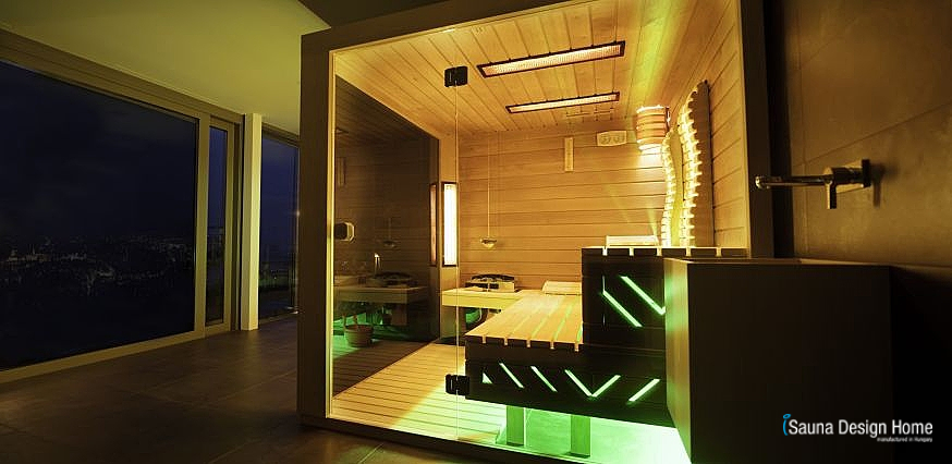 Az egyedi, luxus szauna finn szauna és infra szauna kombinációja, eredeti finn, szauna kiegészítőkkel és csepegtető aromaterápiával.