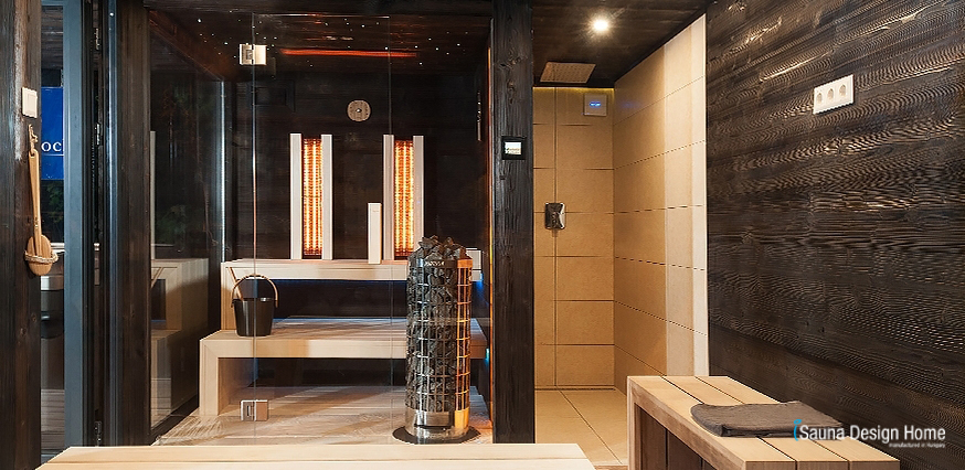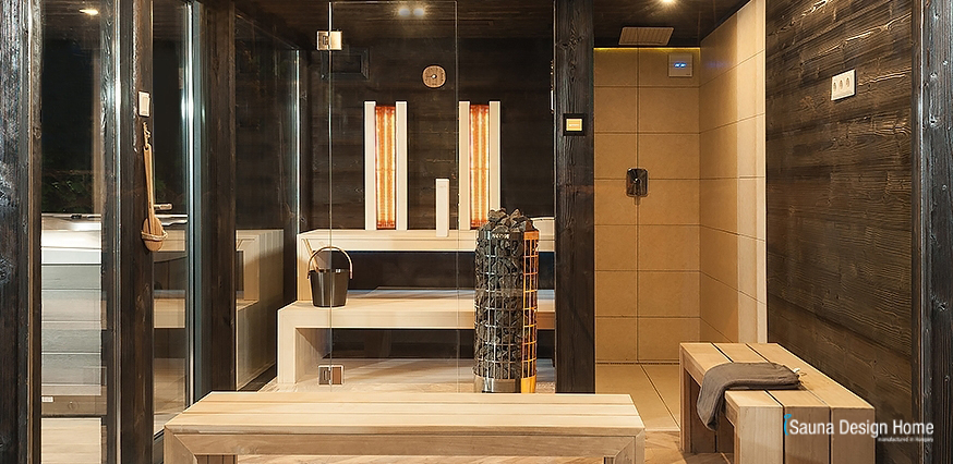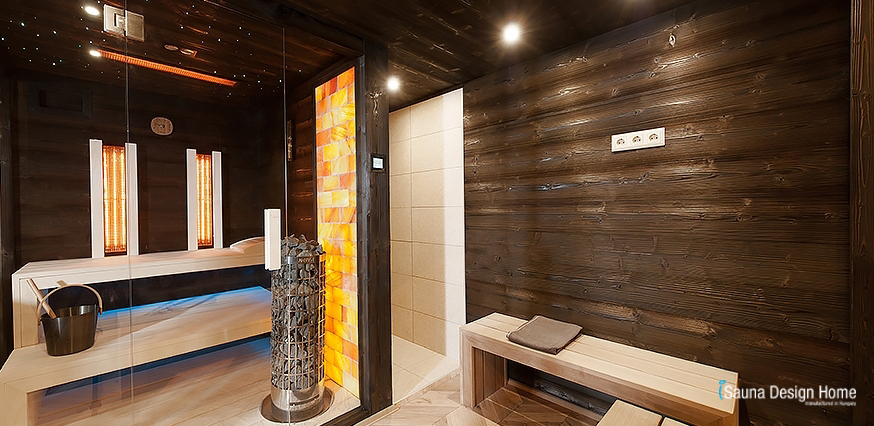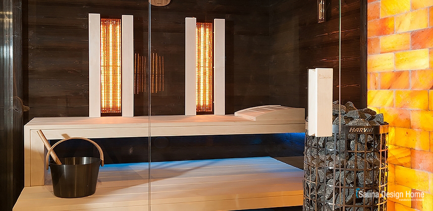 Helyet kapott egy kombinált szauna egység finn, infra és Himalája sófal terápiával.