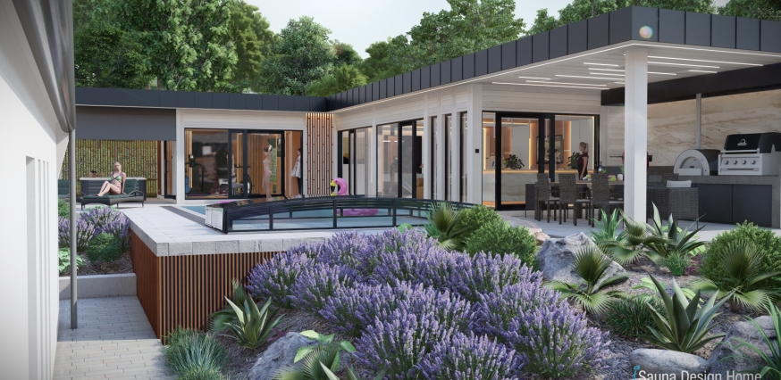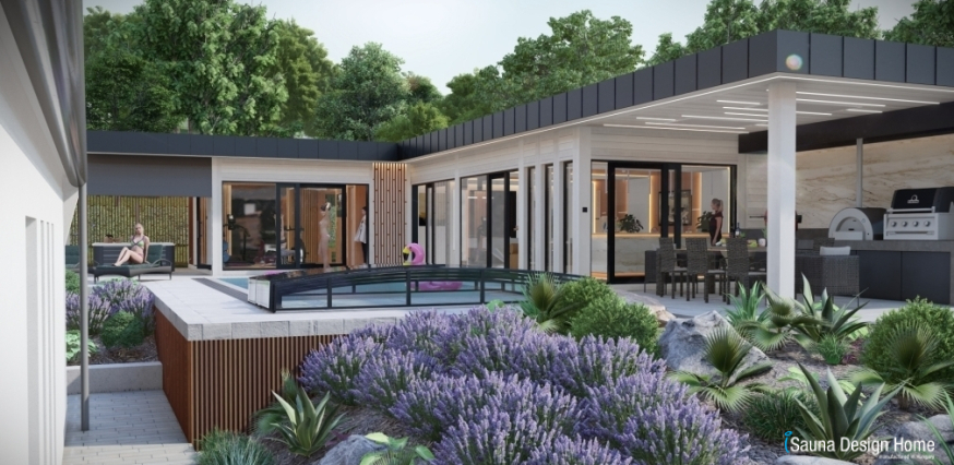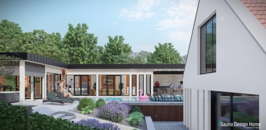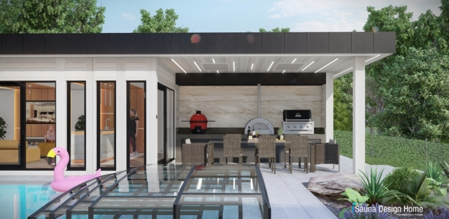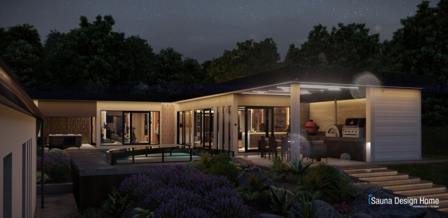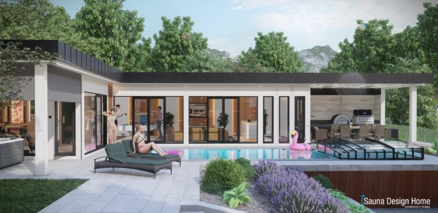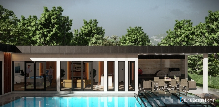 A modern technológiát ötvöztük az autentikus tömörfa dizájn árnyékolókkal, a nyitott terek és az újgenerációs moduláris felépítésű prémium Villeroy & Boch masszázsmedence védelmét elektromos zipSCREEN rendszerrel biztosítottuk. Az egyediséget fokoztuk a kézzel és szenvedéllyel készített kültéri tömörfa dizájn elemekkel, illetve az épületet és annak környezetét professzionális és energiatakarékos LED megvilágítással tettük hangulatosabbá.