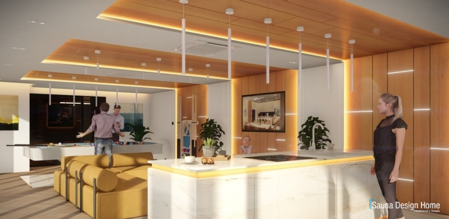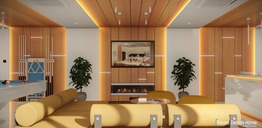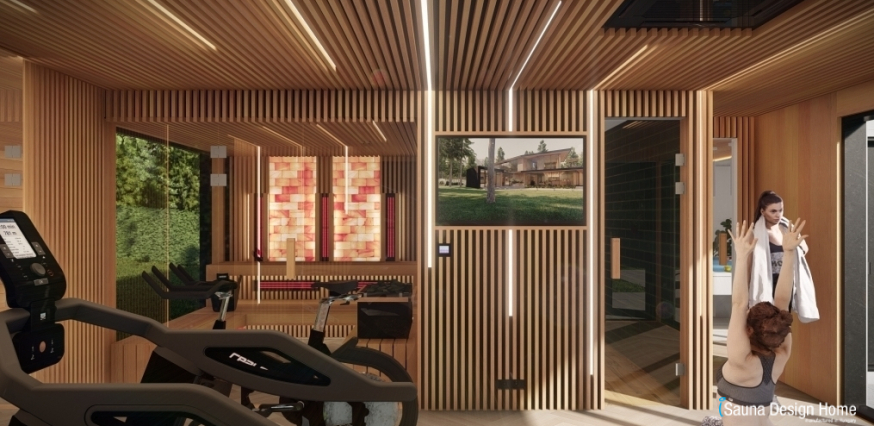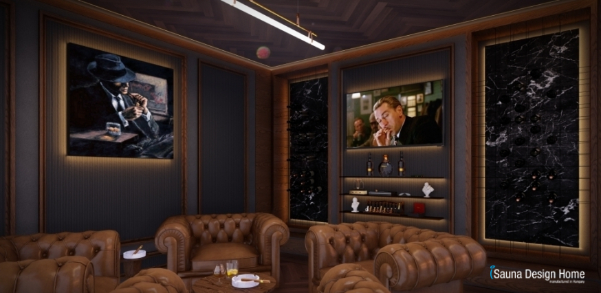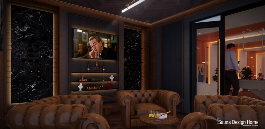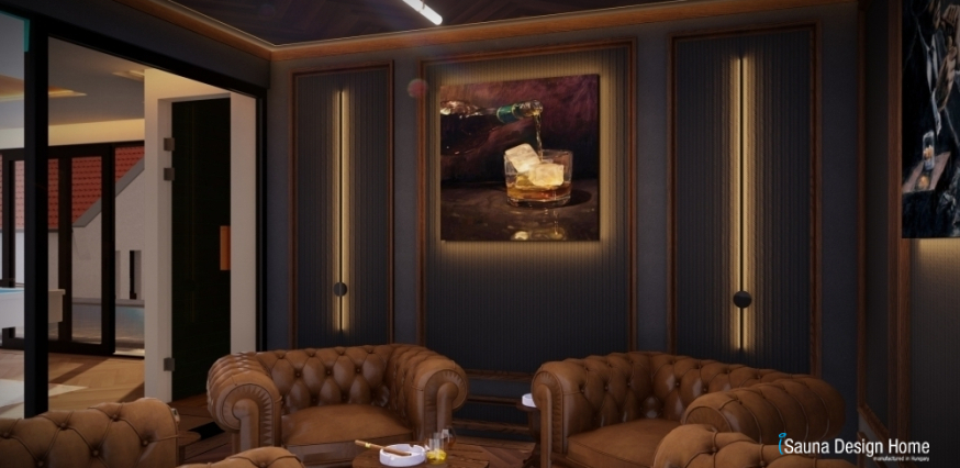 A belső terek kialakítása során -is- nagy hangsúlyt kaptak a megbízóink álmai, mint például egy exkluzív és tömör eleganciával rendelkező szivarszoba, professzionális légtechnikával, ahol Kálmán nyugodt körülmények közt tarthatja meg az üzleti megbeszéléseit is vagy akár leülhet egyedül lazítani is. Edina vágya pedig egy funkcionális edzőterem volt, mellyel nagyban hozzájárul az egészsége megőrzéséhez. Ez utóbbi a család minden tagjának kiemelten fontos, ezért egy komplex szaunát terveztünk az épületbe. Infraszaunát a gyerekeknek, tradicionális finn szaunát pedig a felnőtteknek, kombinálva a 2000 éves himalájai sótéglákkal, melyek együttesen kimagasló pozitív élettani hatásokkal bírnak.