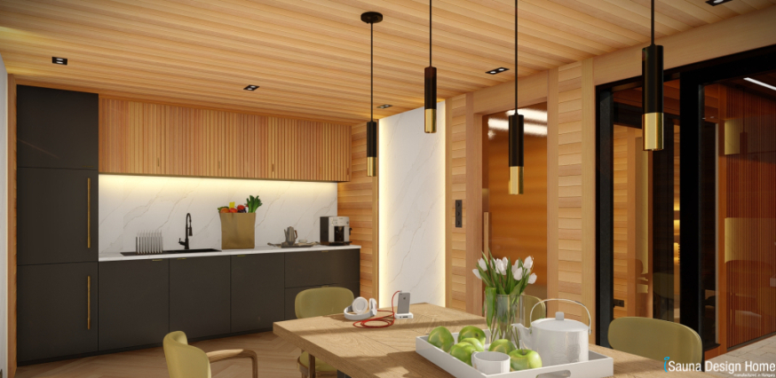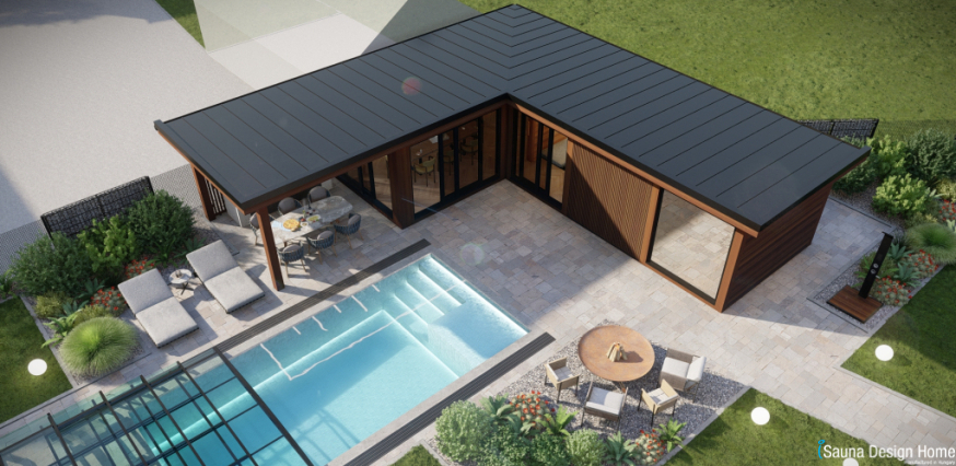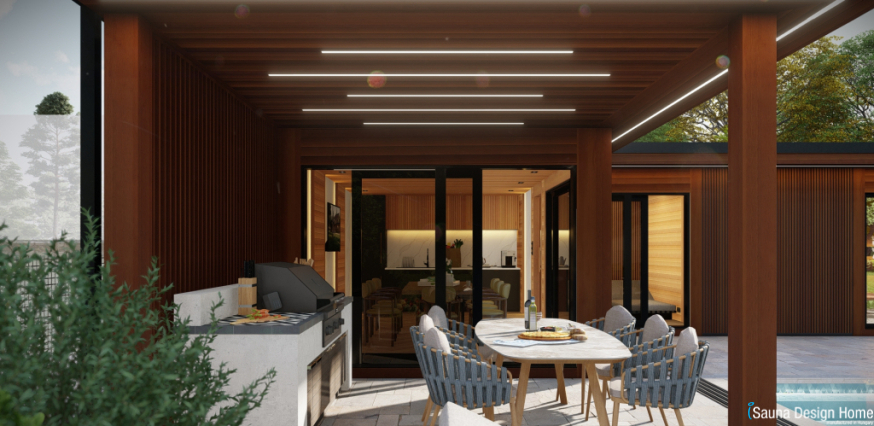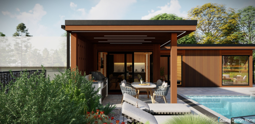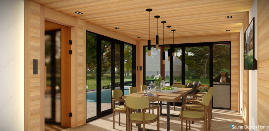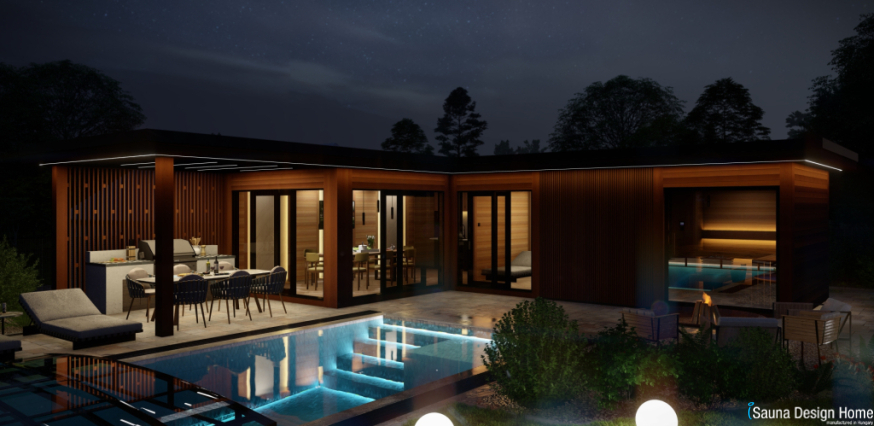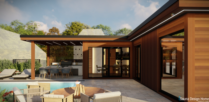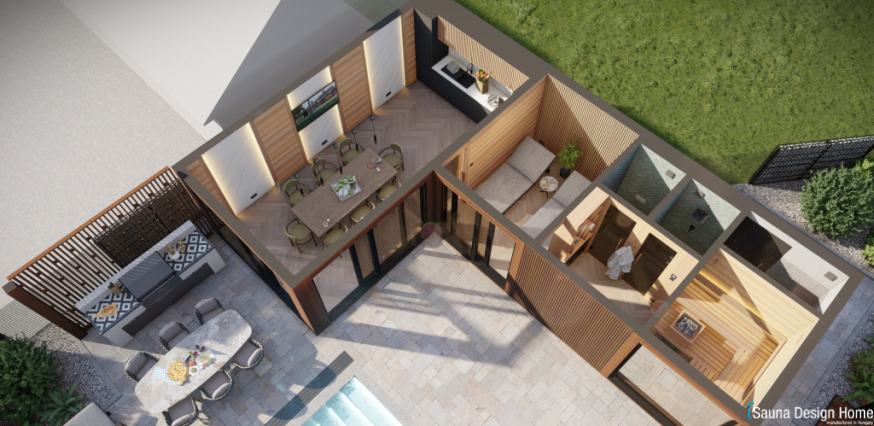 Ez a megoldás nemcsak a praktikumot, hanem az esztétikát és a közösségi élmények megélésének lehetőségét is egyszerre biztosítja – a szaunaház így a pihenés mellett a közös kikapcsolódás tökéletes színterévé válik.