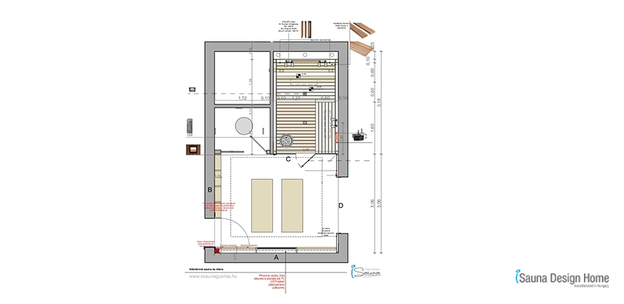 A privát wellness helységben helyet kapott egy zuhanyzó, kombinált szauna és pihenőtér. Faanyagaink közül az I.osztályú kanadai vörös cédrus lambériára esett a választás.