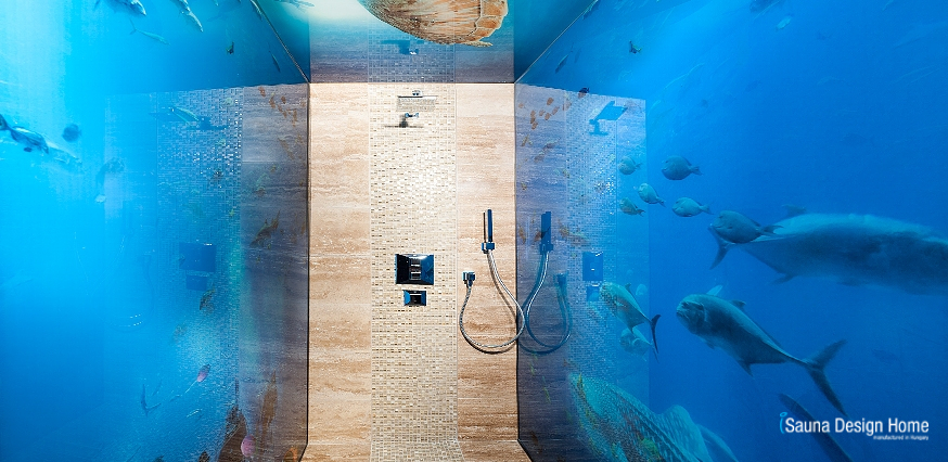 Az iSauna Design Kft. szauna manufaktúra legújabb szolgáltatása a festett üveggel történő egyedi, belsőépítészeti, wellness megoldások. Az edzett üvegre való nyomtatás új lehetőségeket és egyedi, extrém wellness megoldásokat nyit. Ügyfeleink nyitottságát tükrözi a tengerialatti mintázatú wellness zuhanyzó kialakítása. A festett üvegeket a ledes megvilágítás teszi élettelivé, olyannyira mintha tényleg a természetben fürödnénk.