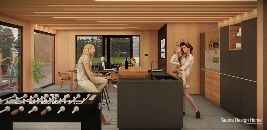 Visszatérő, elégedett ügyfelünk keresett fel minket a Szigetköz szívében, Dunaszegen található szauna manufaktúránkban egyedi elképzelésével. A beszélgetés elején egy kültéri grill konyha kivitelezésén ötleteltünk, majd a több órás beszélgetés alatt kiteljesedett a család régi álma: egy olyan 180 m2-es lakóépület, amely több mint egy wellness-szaunaház és a család- és a baráti társaság minden igényét kielégíti.