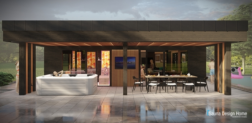A fedett, árnyékolt, szélvédett és nyitott terek kombinációja még egyedibbé formálja a lakó-, wellness épületet. A fedett teraszon kialakított kültéri étkező mellett egy jakuzzi is biztosítja a teljes feltöltődést.