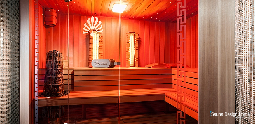 A szauna élményét a kanadai vöröscédrus illata, a csillagos égbolt és a beépített fényterápia fokozza. A savmart üvegeken visszaköszöntöttük a család kívánt mintázatát az eleganciát és minőséget tükröző Versace vonalakkal.