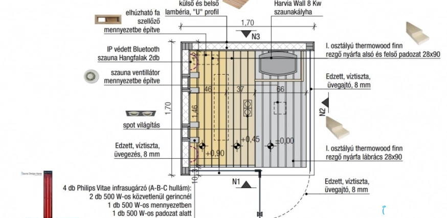 • Szaunaház mérete: 170 x 170 x 210 cm