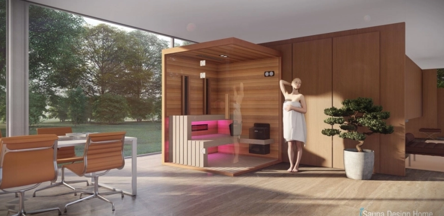 • Edzett, víztiszta üvegezés a szauna frontján és jobb oldalán (8 mm)
