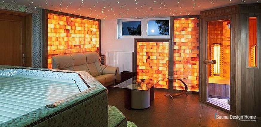 A Himalája sófal I. osztályú sótéglákból épül fel ledes világítással és színben harmonizáló faanyagokkal. A Himalája só wellness helyiségbe ajánlunk a himalája sófal mellé kombinált szaunát, kényelmes foteleket és jakuzzit.