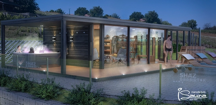 A kombinált szaunaház egy minden igényt kielégítő építmény. Megtalálható benne az infraszauna, finn szauna, gőz szauna és a himalája sóterápia.