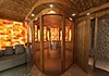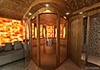 A wellness szoba minden eleme kanadai vöröscédrusból készült, a mennyezeti szerkezettől a polcokig. Mélybarna árnyalat és édeskés illata különös hangulatot varázsol a helyiségben.