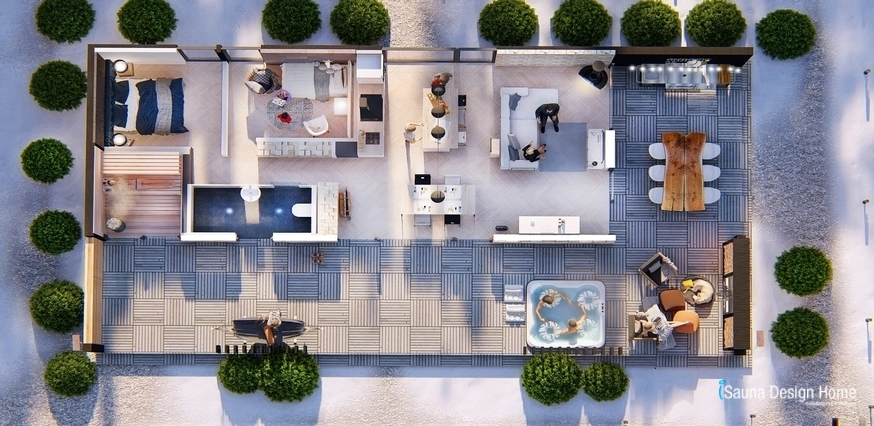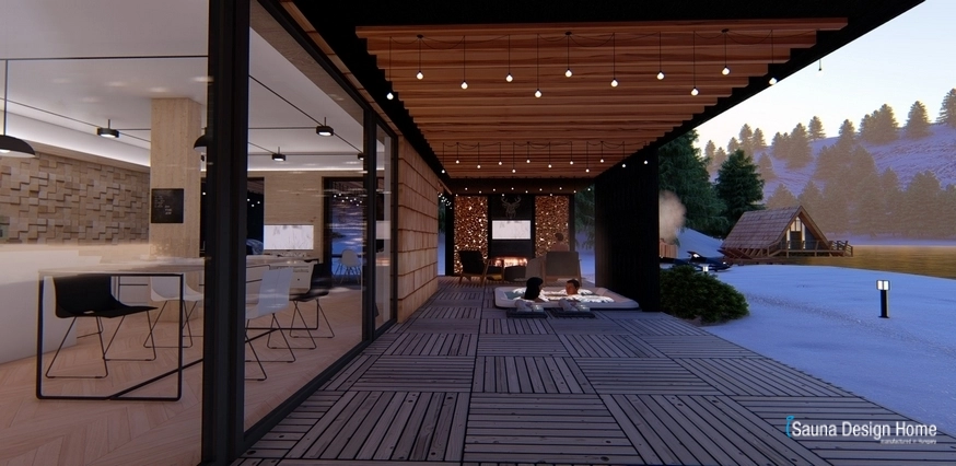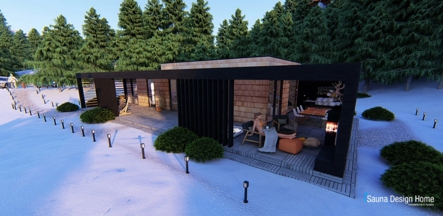 Kültéri szaunaház, nyaraló építés skandináv stílusban