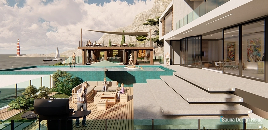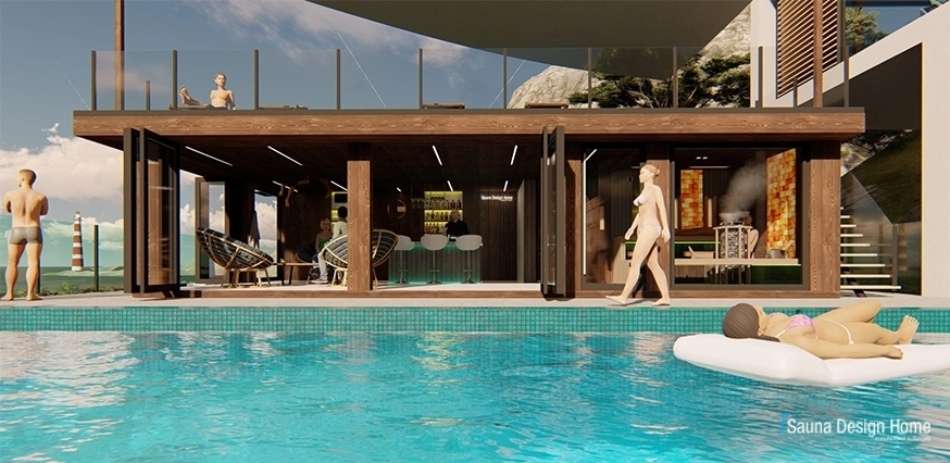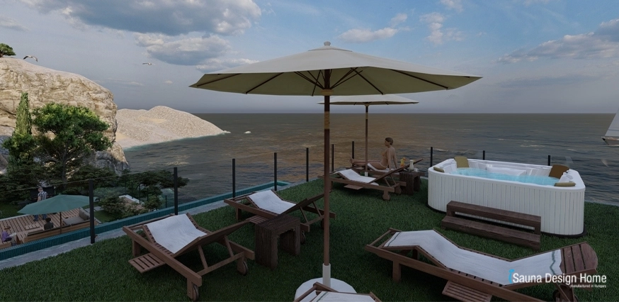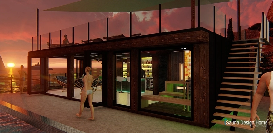 iSauna Design Home modern szaunaház napozó terasszal, masszázsmedencével - Igazi beach életérzés otthonra!