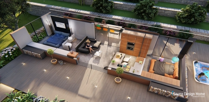 A formatervezés és funkciók kiosztása során fontos szempont volt a 4 évszakos használhatóság, amit a legkorszerűbb szigetelések, mobil klímák, árnyékolás technikák és elektromos padlófűtés rendszerek biztosítanak!